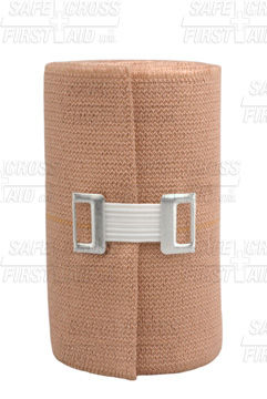 For use on elbows, knees, ankles or lower legs. Compression bandage made of cotton and rayon stretch fabric with non-fraying edges. Provides firm support for varicose veins and leg ulcers. Special weave minimizes excessive stretching and ensures uniform compression, durability, and long use. Central yellow line assists in proper application. Roll is 4.5 m (5 yds) in length when stretched.