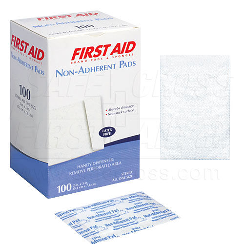 Non-adherent dressings consist of an absorbent cotton core pad bonded on the top and bottom with a soft, non-adherent perforated mylar film. Used as a primary dressing over surgical incisions, lacerations, abrasions, non-draining and lightly draining wounds. Will not disturb or stick to the wound. Encourages air circulation and light fluid collection. Package of 100.